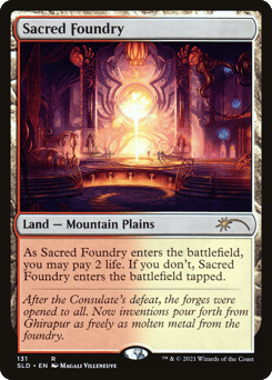 ({T}: Add {U} or {R}.) As this land enters, you may pay 2 life. If you don't, it enters tapped.