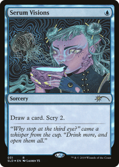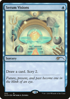 Scry 1. (Look at the top card of your library. You may put that card on the bottom.) Draw a card.