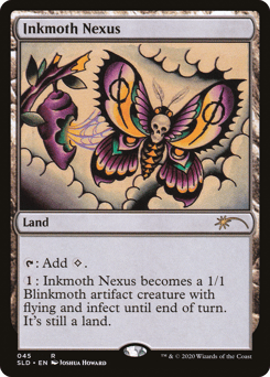 {T}: Add {C}. {1}: This land becomes a 1/1 Phyrexian Blinkmoth artifact creature with flying and infect until end of turn. It's still a land. (It deals damage to creatures in the form of -1/-1 counters and to players in the form of poison counters.)