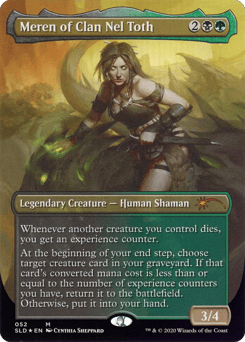Whenever another creature you control dies, you get an experience counter. At the beginning of your end step, choose target creature card in your graveyard. If that card's mana value is less than or equal to the number of experience counters you have, return it to the battlefield. Otherwise, put it into your hand.