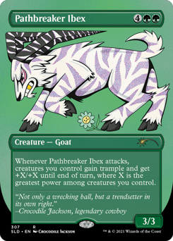 {T}: Add {C}. {X}{R}{G}, {T}: Target creature gets +X/+0 and gains trample until end of turn.