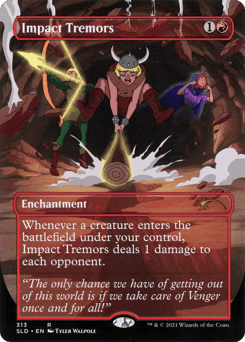 Whenever a creature you control enters, this enchantment deals 1 damage to each opponent.