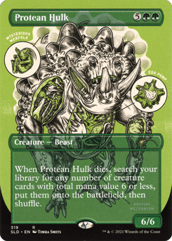 When this creature dies, search your library for any number of creature cards with total mana value 6 or less, put them onto the battlefield, then shuffle.