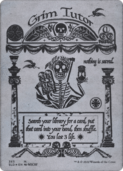 Search your library for a card, put that card into your hand, then shuffle. You lose 3 life.