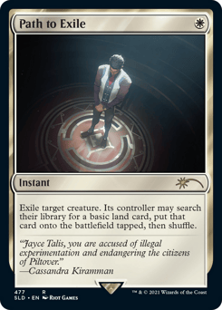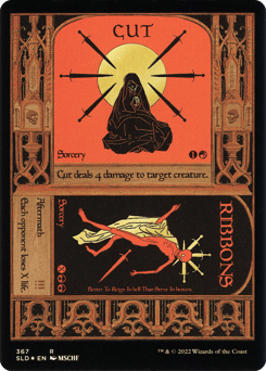 Choose target spell or permanent that's red or green. Its owner puts it on their choice of the top or bottom of their library.