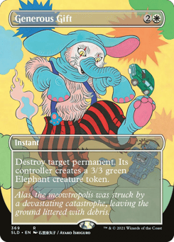 Destroy target permanent. Its controller creates a 3/3 green Elephant creature token.