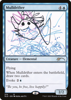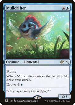 Flying When this creature enters, draw two cards. Evoke {2}{U} (You may cast this spell for its evoke cost. If you do, it's sacrificed when it enters.)