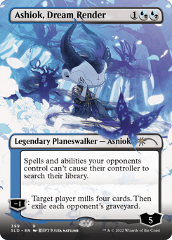 Spells and abilities your opponents control can't cause their controller to search their library. [−1]: Target player mills four cards. Then exile each opponent's graveyard.