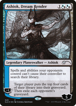 Spells and abilities your opponents control can't cause their controller to search their library. [−1]: Target player mills four cards. Then exile each opponent's graveyard.