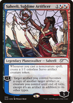 Whenever you cast a noncreature spell, create a 1/1 colorless Servo artifact creature token. [−2]: Target artifact you control becomes a copy of another target artifact or creature you control until end of turn, except it's an artifact in addition to its other types.