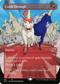 Creatures you control gain trample until end of turn. (Each of those creatures can deal excess combat damage to the player or planeswalker it's attacking.) Draw a card.