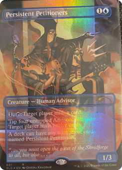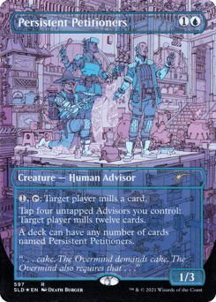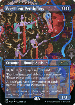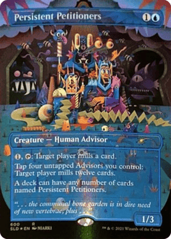{1}, {T}: Target player mills a card. (They put the top card of their library into their graveyard.) Tap four untapped Advisors you control: Target player mills twelve cards. A deck can have any number of cards named Persistent Petitioners.