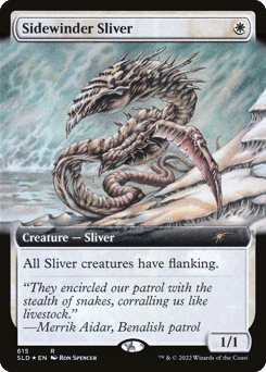 All Sliver creatures have flanking. (Whenever a creature without flanking blocks a Sliver, the blocking creature gets -1/-1 until end of turn.)