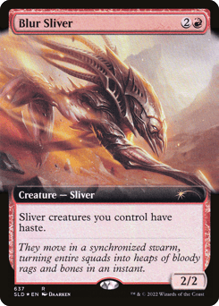 Sliver creatures you control have haste. (They can attack and {T} as soon as they come under your control.)