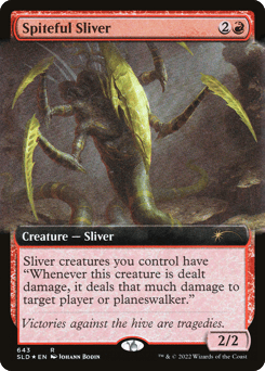 Sliver creatures you control have "Whenever this creature is dealt damage, it deals that much damage to target player or planeswalker."