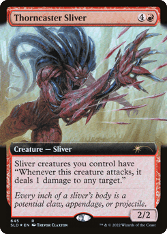 Whenever a Sliver deals combat damage to a player, its controller may create a 1/1 colorless Sliver creature token.