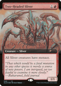 All Sliver creatures have menace. (They can't be blocked except by two or more creatures.)