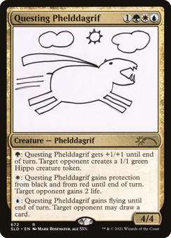 {G}: This creature gets +1/+1 until end of turn. Target opponent creates a 1/1 green Hippo creature token. {W}: This creature gains protection from black and from red until end of turn. Target opponent gains 2 life. {U}: This creature gains flying until end of turn. Target opponent may draw a card.
