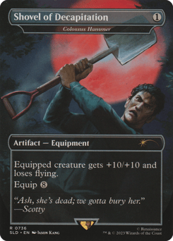 Equipped creature has hexproof and haste. (It can't be the target of spells or abilities your opponents control. It can attack and {T} no matter when it came under your control.) Equip {1} ({1}: Attach to target creature you control. Equip only as a sorcery.)