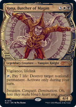 Vigilance, lifelink {T}, Pay 7 life: Destroy target nonland permanent. Activate only during your turn.
