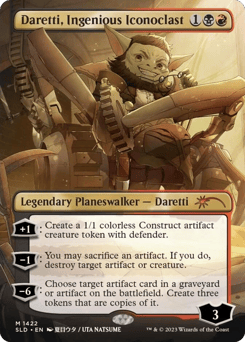 [+1]: Create a 1/1 colorless Construct artifact creature token with defender. [−1]: You may sacrifice an artifact. If you do, destroy target artifact or creature. [−6]: Choose target artifact card in a graveyard or artifact on the battlefield. Create three tokens that are copies of it.
