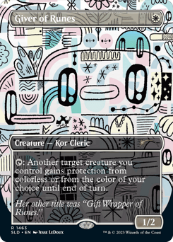 {T}: Another target creature you control gains protection from colorless or from the color of your choice until end of turn.