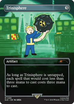 As long as this artifact is untapped, each spell that would cost less than three mana to cast costs three mana to cast. (Additional mana in the cost may be paid with any color of mana or colorless mana. For example, a spell that would cost {1}{B} to cast costs {2}{B} to cast instead.)