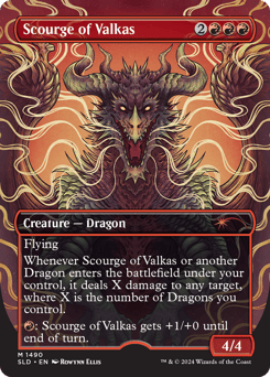 Flying When this creature enters, you become the monarch. At the beginning of your upkeep, if you're the monarch, create a 5/5 red Dragon creature token with flying.