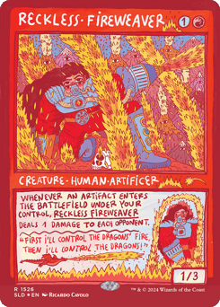 Whenever an artifact you control enters, this creature deals 1 damage to each opponent.