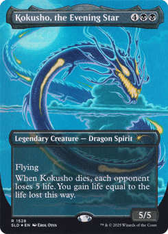 Flying When Kokusho dies, each opponent loses 5 life. You gain life equal to the life lost this way.