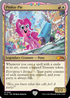Whenever you cast a spell with a smile in its art, create a tapped Treasure token. Everypony's Invited — Your party consists of each creature you control, and your party is always full.