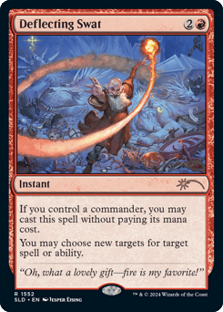 If you control a commander, you may cast this spell without paying its mana cost. You may choose new targets for target spell or ability.