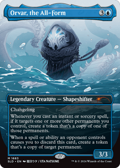 Changeling Whenever you cast an instant or sorcery spell, if it targets one or more other permanents you control, create a token that's a copy of one of those permanents. When a spell or ability an opponent controls causes you to discard this card, create a token that's a copy of target permanent.