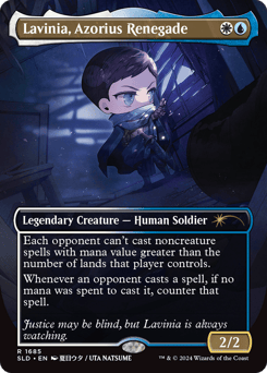 Each opponent can't cast noncreature spells with mana value greater than the number of lands that player controls. Whenever an opponent casts a spell, if no mana was spent to cast it, counter that spell.