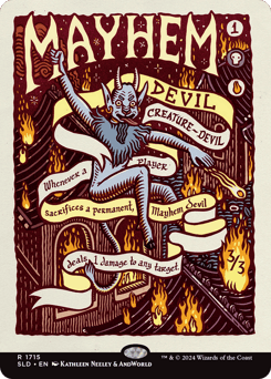Flying, haste Whenever Rankle deals combat damage to a player, choose any number — • Each player discards a card. • Each player loses 1 life and draws a card. • Each player sacrifices a creature of their choice.