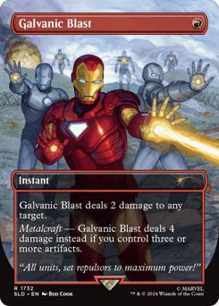 Galvanic Blast deals 2 damage to any target. Metalcraft — Galvanic Blast deals 4 damage instead if you control three or more artifacts.