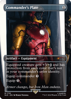 Equipped creature gets +3/+3 and has protection from each color that's not in your commander's color identity. Equip commander {3} Equip {5}