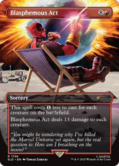 This spell costs {1} less to cast for each creature on the battlefield. Blasphemous Act deals 13 damage to each creature.