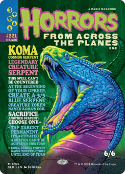 This spell can't be countered. At the beginning of each upkeep, create a 3/3 blue Serpent creature token named Koma's Coil. Sacrifice another Serpent: Choose one — • Tap target permanent. Its activated abilities can't be activated this turn. • Koma gains indestructible until end of turn.