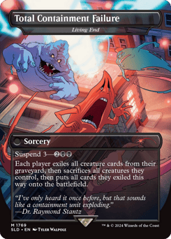 Suspend 3—{2}{B}{B} Each player exiles all creature cards from their graveyard, then sacrifices all creatures they control, then puts all cards they exiled this way onto the battlefield.