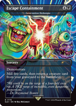 Demonstrate (When you cast this spell, you may copy it. If you do, choose an opponent to also copy it.) Mill five cards, then return a creature card from your graveyard to the battlefield.