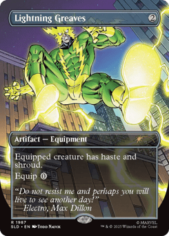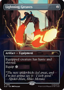 Equipped creature has hexproof and haste. (It can't be the target of spells or abilities your opponents control. It can attack and {T} no matter when it came under your control.) Equip {1} ({1}: Attach to target creature you control. Equip only as a sorcery.)