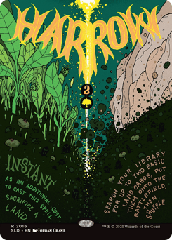 As an additional cost to cast this spell, sacrifice a land. Search your library for up to two basic land cards, put them onto the battlefield, then shuffle.