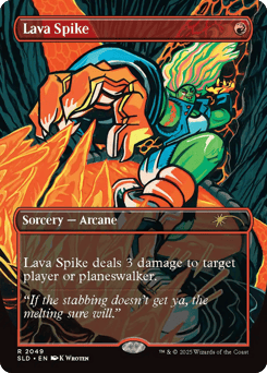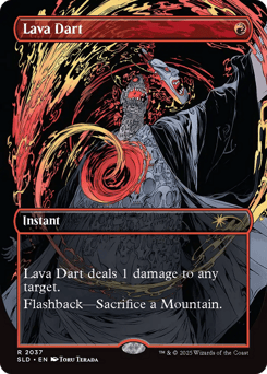 Lava Dart deals 1 damage to any target. Flashback—Sacrifice a Mountain. (You may cast this card from your graveyard for its flashback cost. Then exile it.)