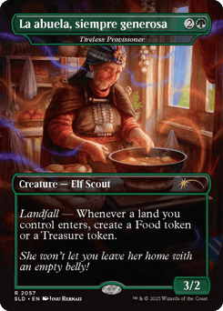 Landfall — Whenever a land you control enters, create a Food token or a Treasure token. (Food is an artifact with "{2}, {T}, Sacrifice this token: You gain 3 life." Treasure is an artifact with "{T}, Sacrifice this token: Add one mana of any color.")