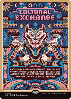 Choose any number of creatures target player controls. Choose the same number of creatures another target player controls. Those players exchange control of those creatures. (This effect lasts indefinitely.)