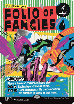 Players have no maximum hand size. {X}{X}, {T}: Each player draws X cards. {2}{U}, {T}: Each opponent mills cards equal to the number of cards in their hand.