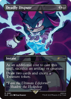 Haste Whenever Shadow the Hedgehog or another creature you control with flash or haste dies, draw a card. Chaos Control — Each spell you cast has split second if mana from an artifact was spent to cast it. (As long as it's on the stack, players can't cast spells or activate abilities that aren't mana abilities.)