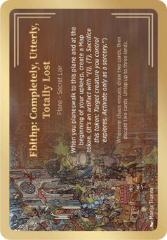When you planeswalk to this plane and at the beginning of your upkeep, create a Map token. (It's an artifact with "{1}, {T}, Sacrifice this token: Target creature you control explores. Activate only as a sorcery.") Whenever chaos ensues, draw two cards, then discard two cards. Untap up to three lands.