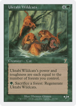 Uktabi Wildcats's power and toughness are each equal to the number of Forests you control. {G}, Sacrifice a Forest: Regenerate this creature.